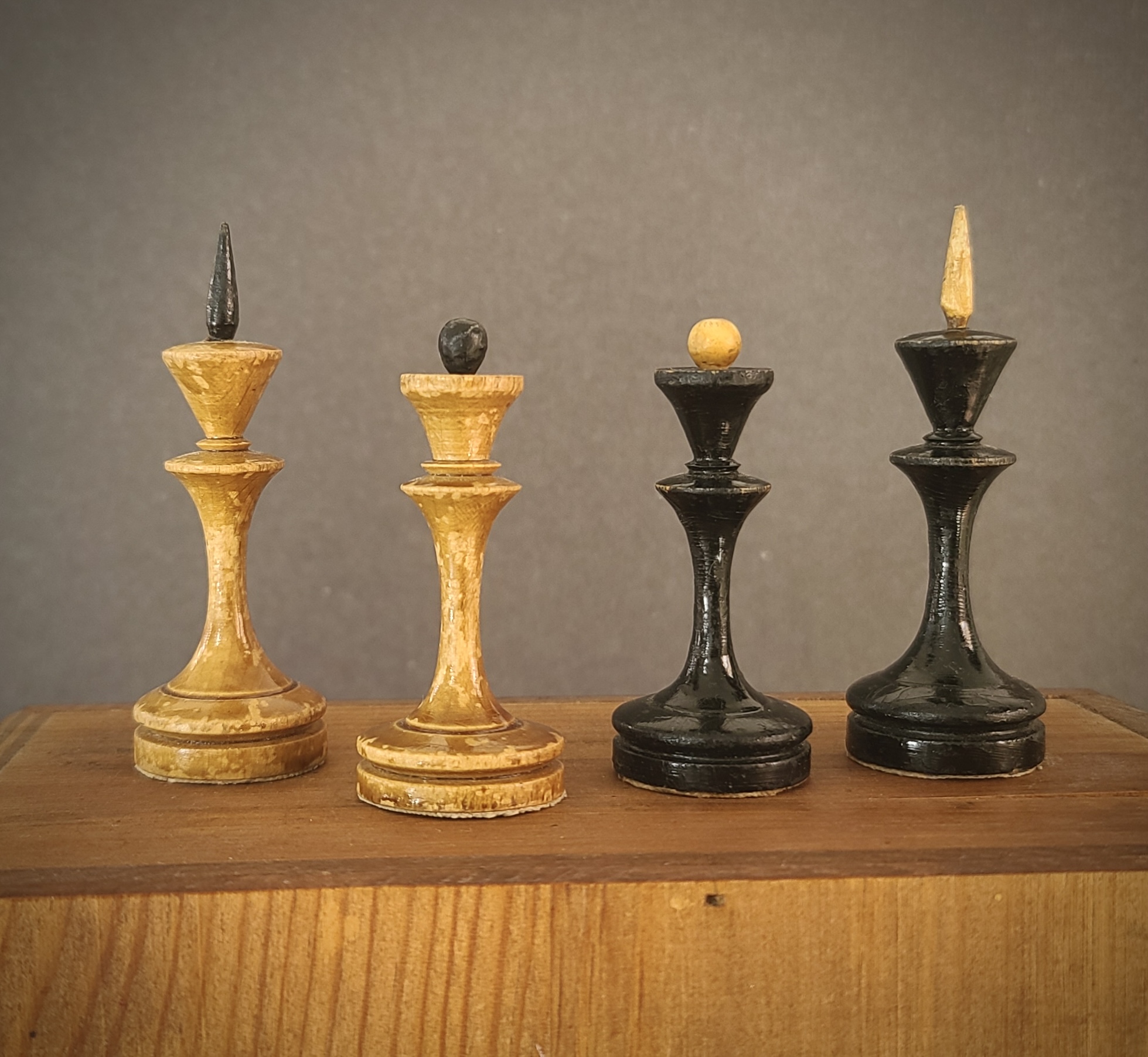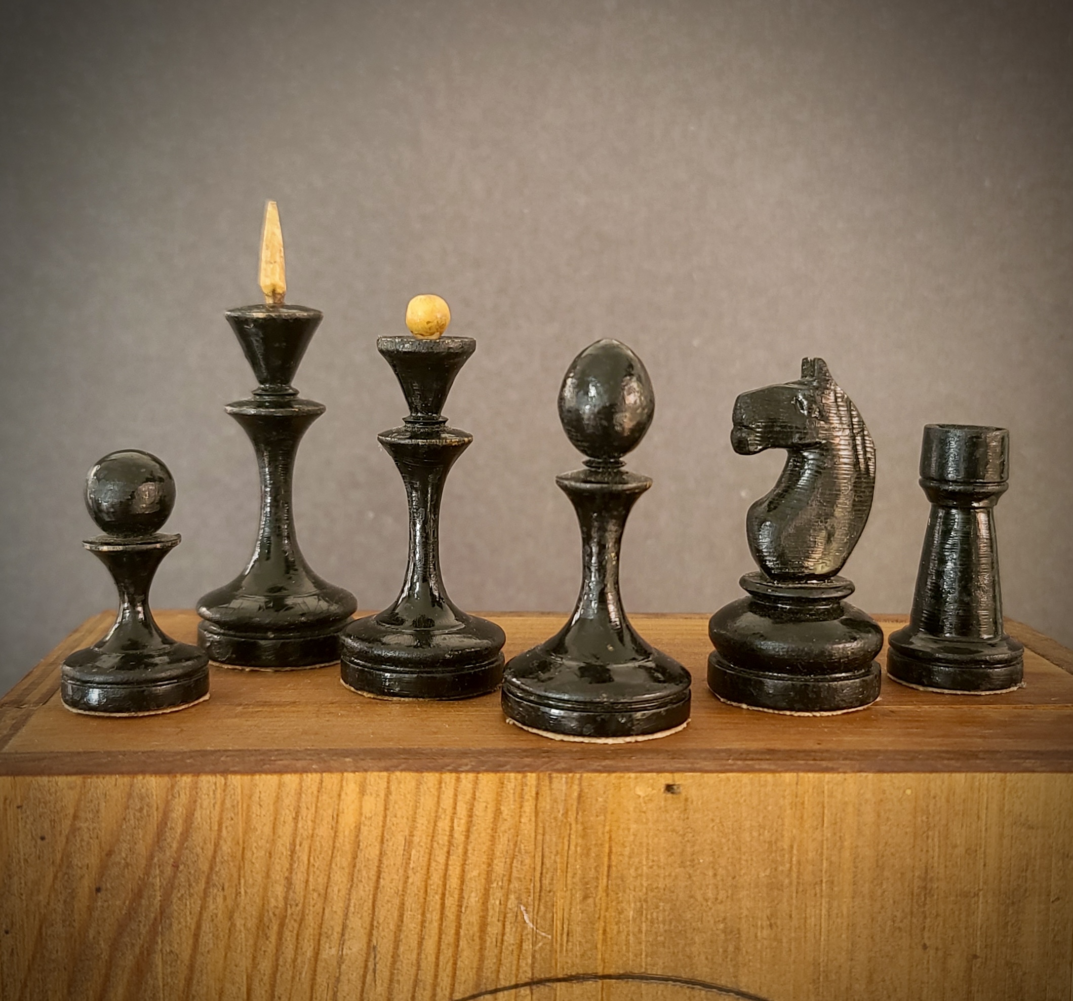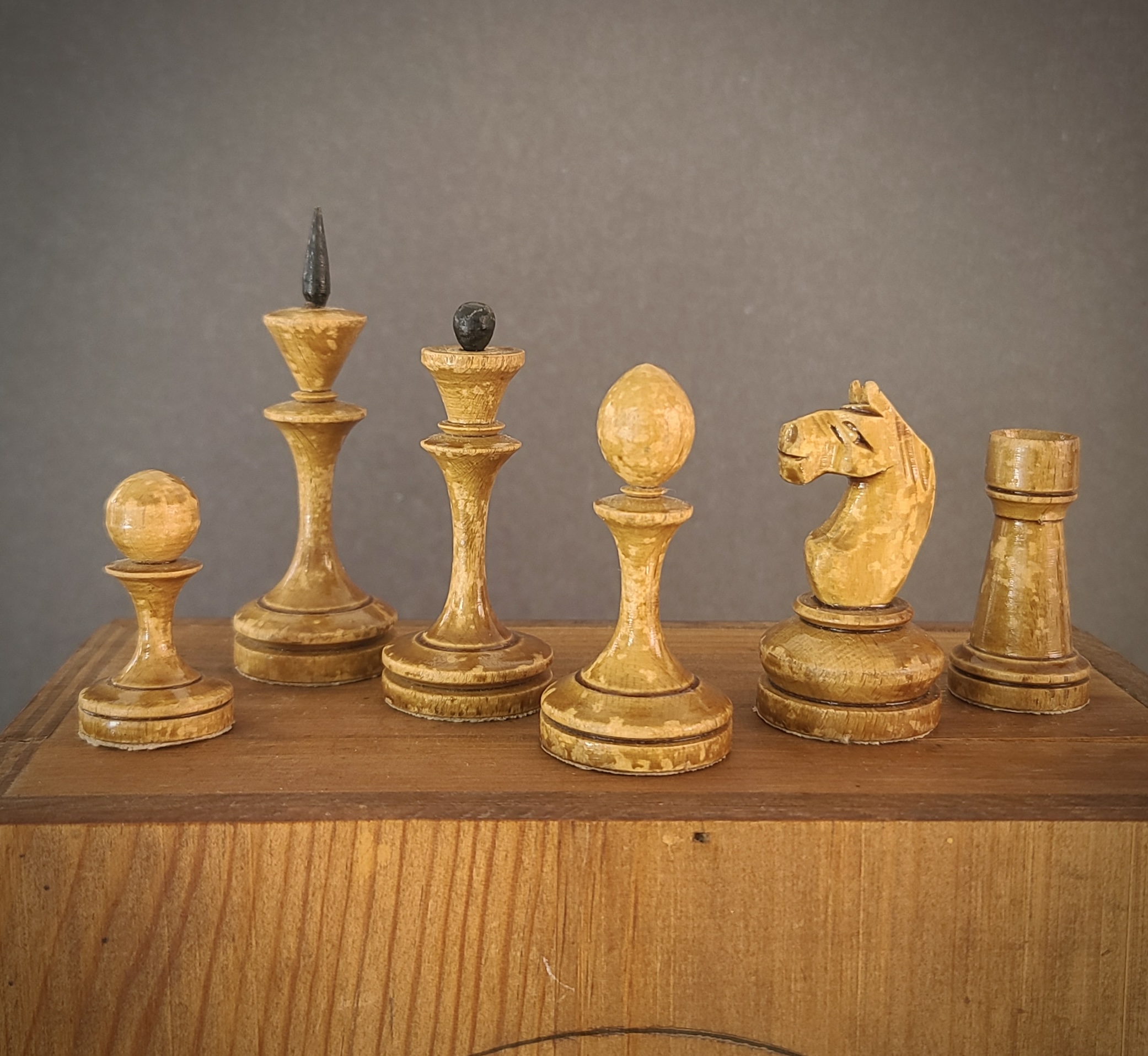 Stabulum Victores (‘Champions of the Dorm’); Soviet ‘Averbakh Style’ Egg-Bishop Chess set, c.1950s