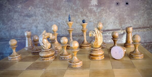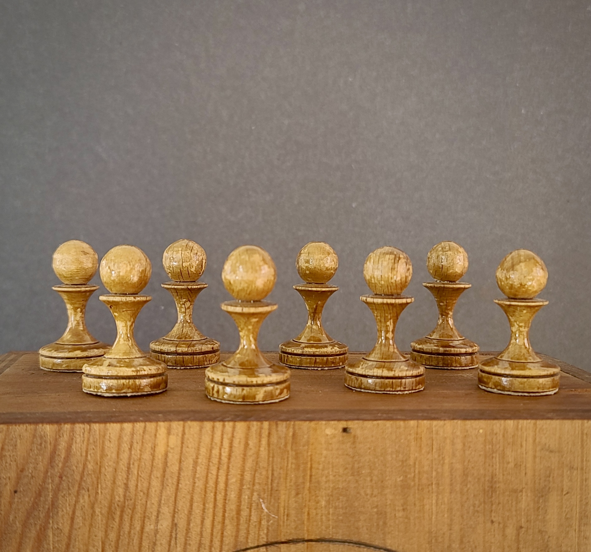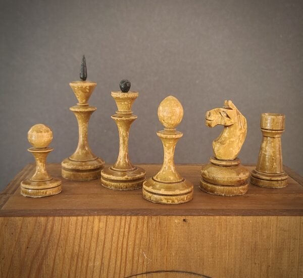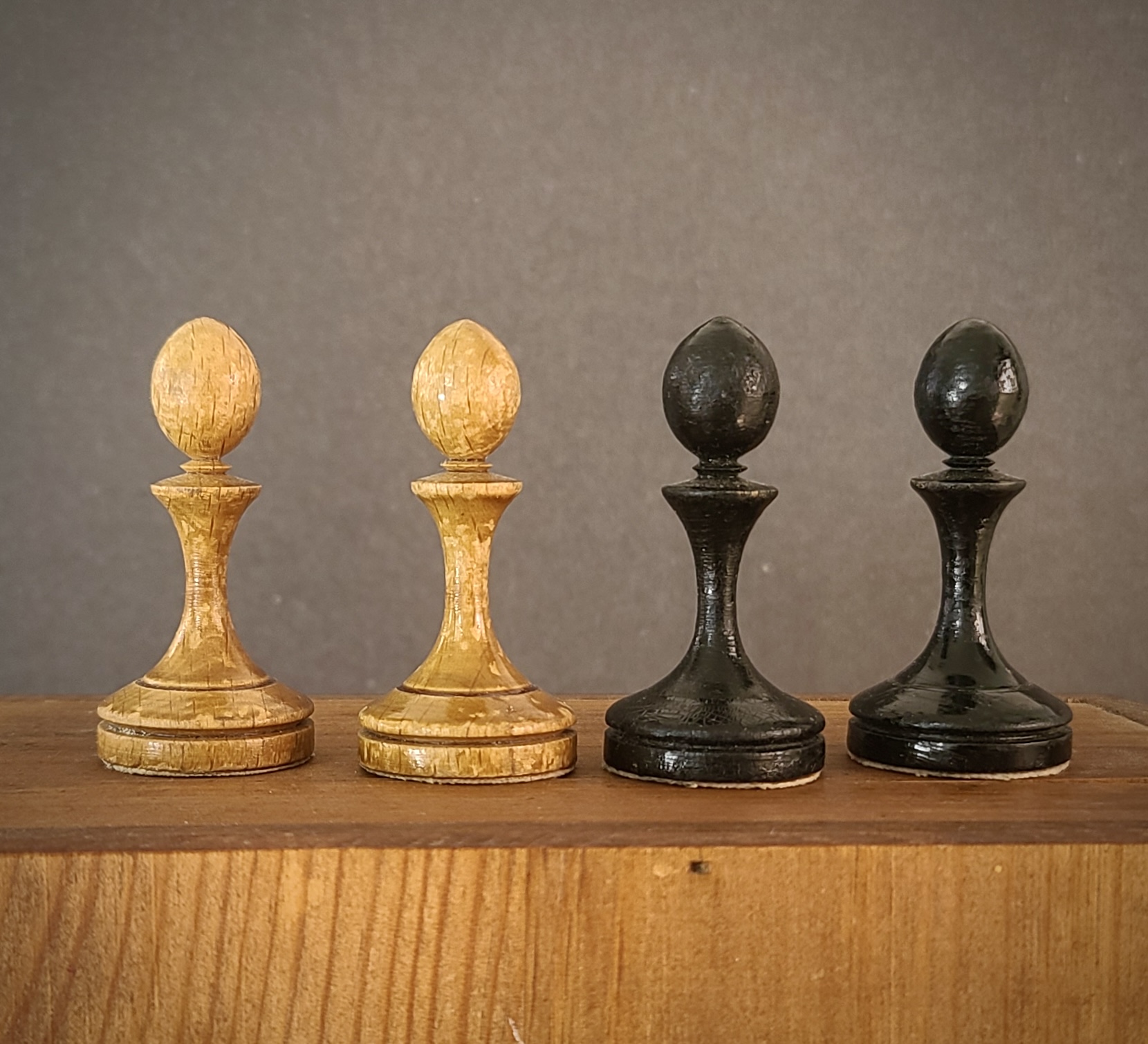 Stabulum Victores (‘Champions of the Dorm’); Soviet ‘Averbakh Style’ Egg-Bishop Chess set, c.1950s