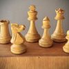 Height: King 9cm, wt 30g, base width 3.8cm, Queen 8.2cm 35g, Bishop 7.4cm 30g, Knight 6.7cm 32g, Rook 5.2cm 32g, Pawn 5cm 15g