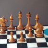 Height: King 9.5cm, weight 17g, base width 3.6cm, Queen 8.2cm, Bishop 7.3cm, Knight 6cm, Rook 5cm, Pawn 4.2cm.