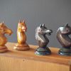 *SOLD* Lupus Auribus Milities (Wolf-Eared Knights); 32 Weighted Wooden Chessmen, l. brown v. d. brown, Soviet (post Stalin Era), 1960-1970