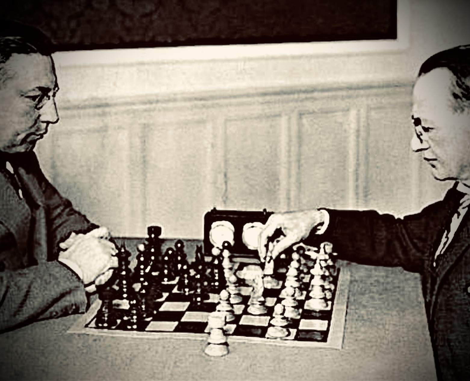 * B&W photo source: S.B. Cohen, Rubinstein vs. Tarrasch, Bad Kissingen, Germany, c.1928