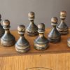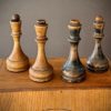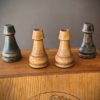 The king’s finial replicates the original in form, but I have given them a more stocky, solid feel in keeping with the overall design. The queen’s ball-finial mirrors that of the pawns.